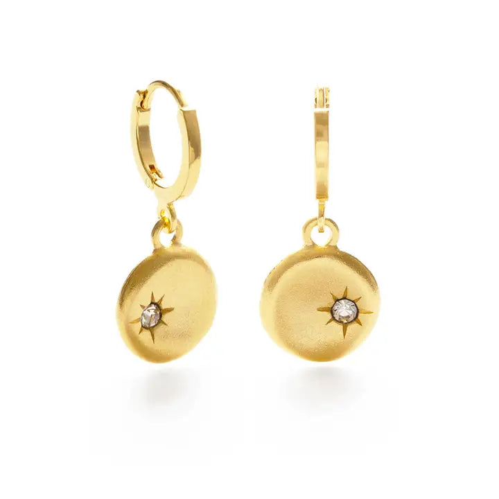 - These organic form coins set with Czech crystals measure just under .5" and they hang from 14mm huggie hoops