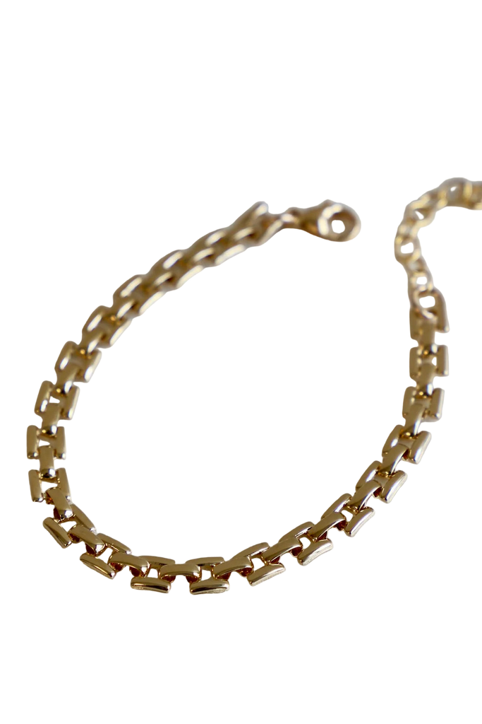 - The Sienna Chain Bracelet features a unique square link chain that lays beautifully on any wrist. Meant to mimic the look of a chic watch, this chain pairs well with any gold stack as it sits flat on the skin.