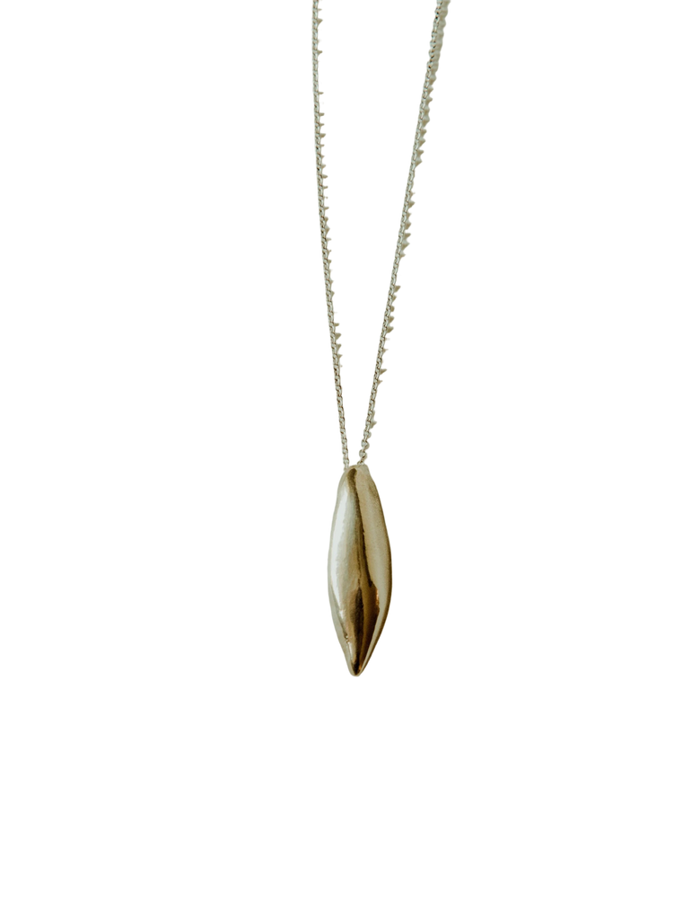 - First carved from wax then cast in recycled yellow bronze. The Ligne necklace is a lovely elegant pod shape to wear alone or layered with our Lucia necklace. Strung on sterling silver chain in 20” length
