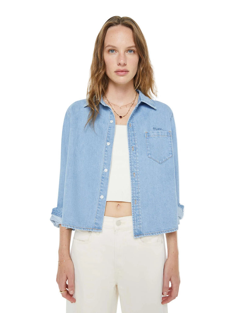 - A play on the classic button-up with a front patch pocket and a cropped fit