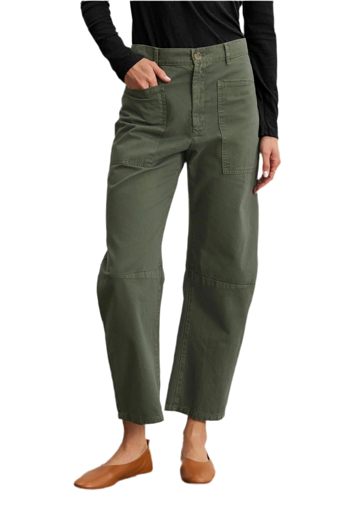 • Crafted from a sturdy cotton twill, this casual trouser has a modern line with a subtle, vertical seam at the knee that lends a cool curved silhouette