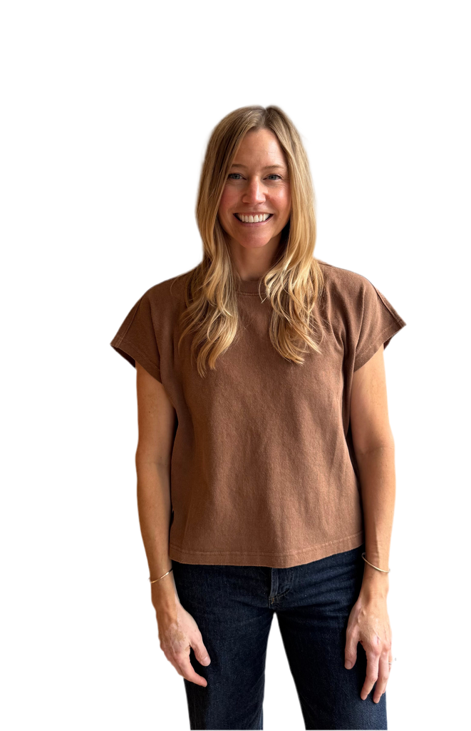 She features a shorter length to pair perfectly with high waisted bottoms but still give enough coverage for mid-rise bottoms and just the right amount of off shoulder dolman sleeve