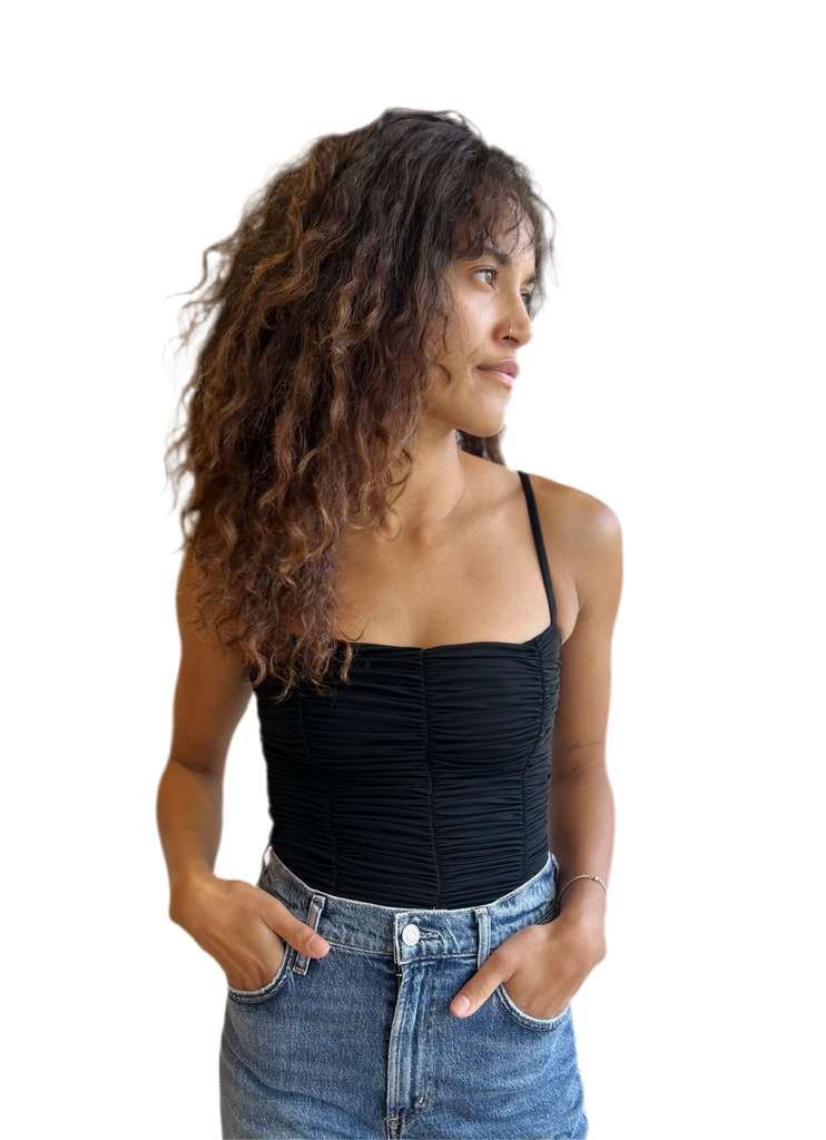 - Stretch nylon jersey bodysuit with ultra-fine shirring throughout