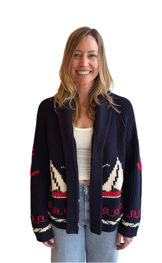 - Inspired by a 1960s kids' sweater, The Sailboat Lodge Cardigan features hand-embroidered boats and sailor motifs on our best-selling Lodge Cardigan